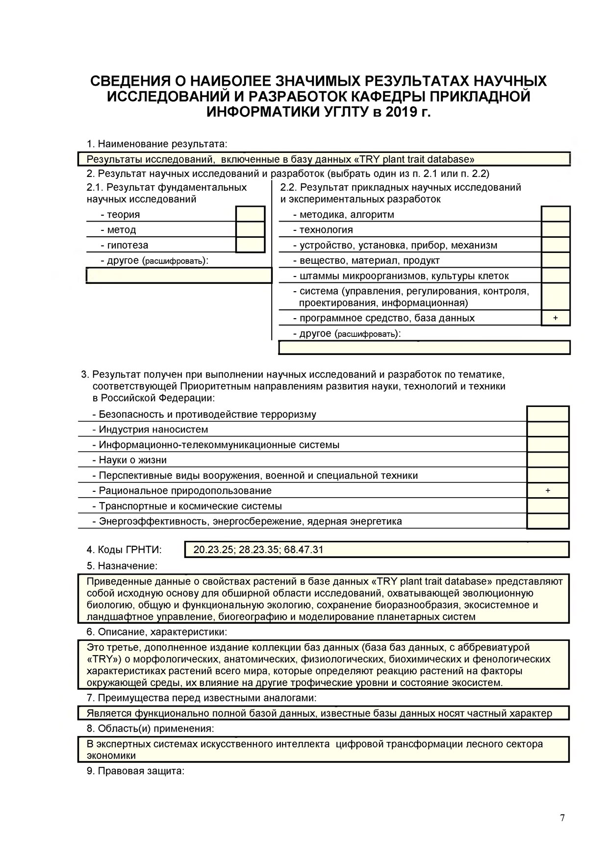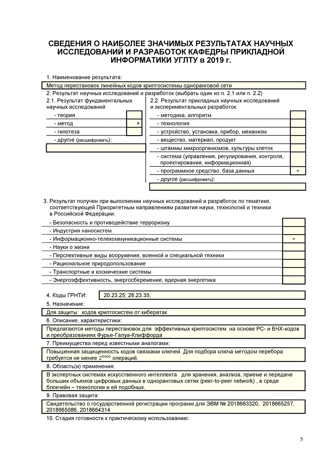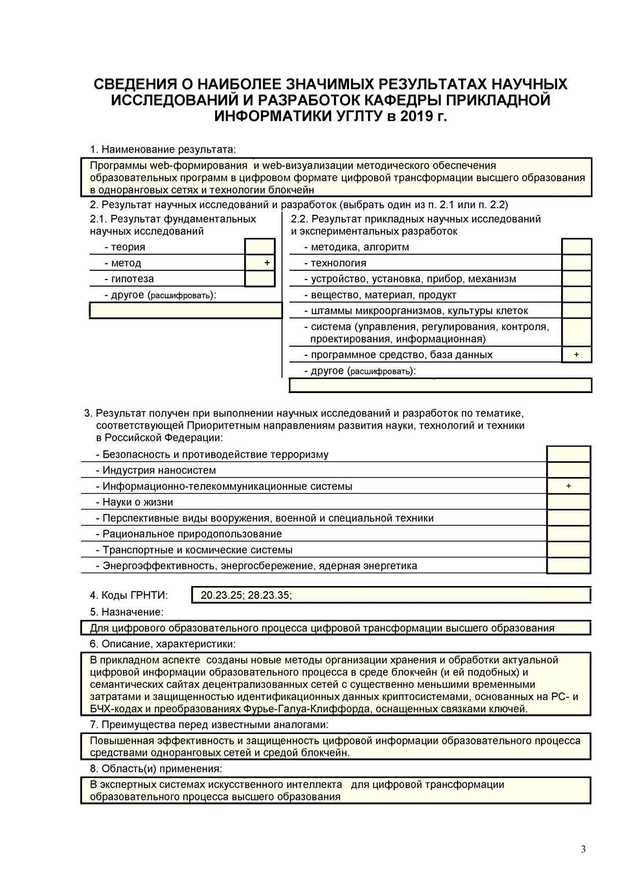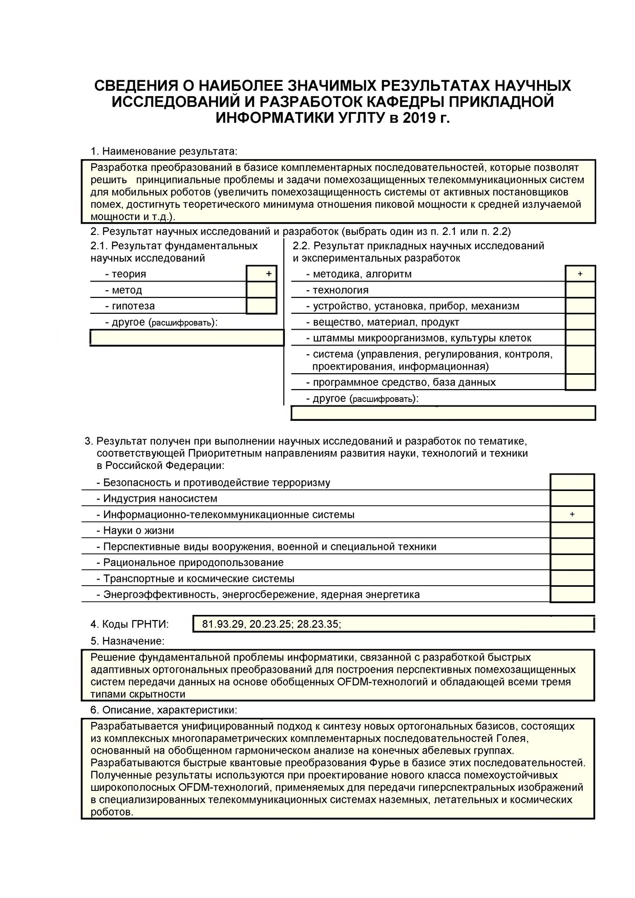 СВЕДЕНИЯ О НАИБОЛЕЕ ЗНАЧИМЫХ РЕЗУЛЬТАТАХ НАУЧНЫХ ИССЛЕДОВАНИЙ И РАЗРАБОТОК КАФЕДРЫ ПИ УГЛТУ в 2019 г.