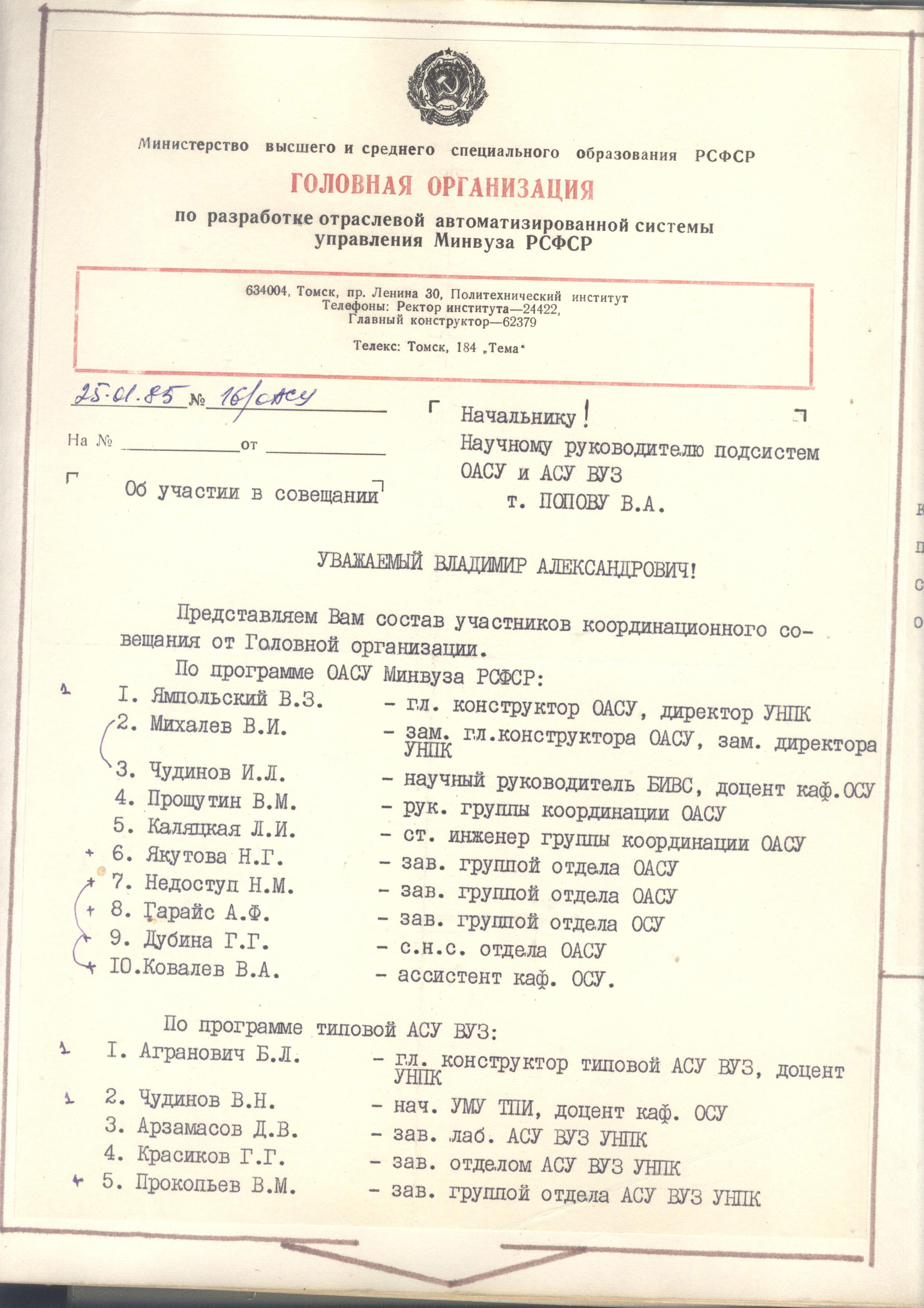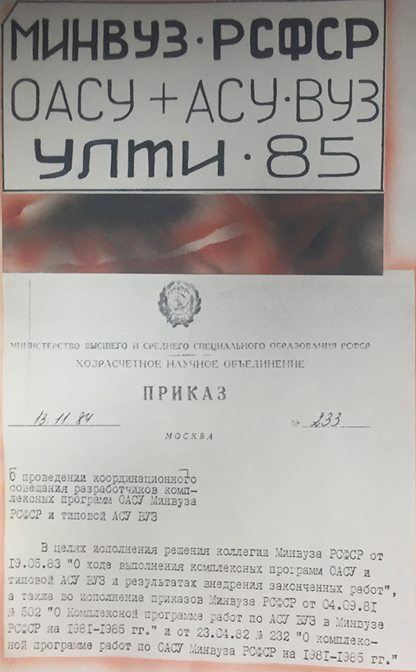 Некоторые документы при выполнение проектов ОАСУ Минвуза РСФСР и типовой АСУ ВУЗ