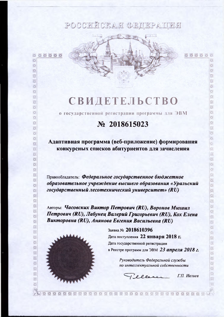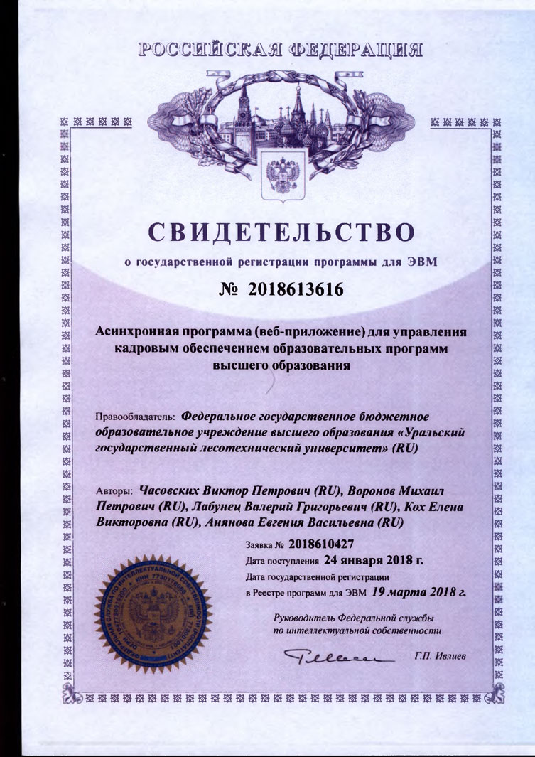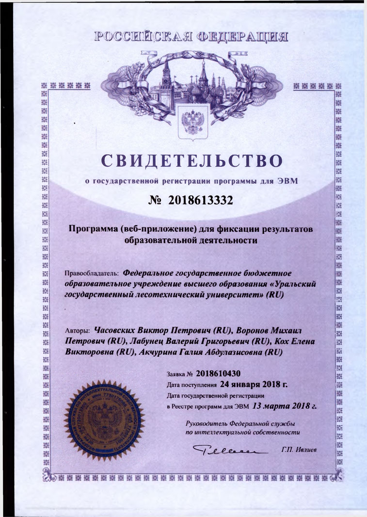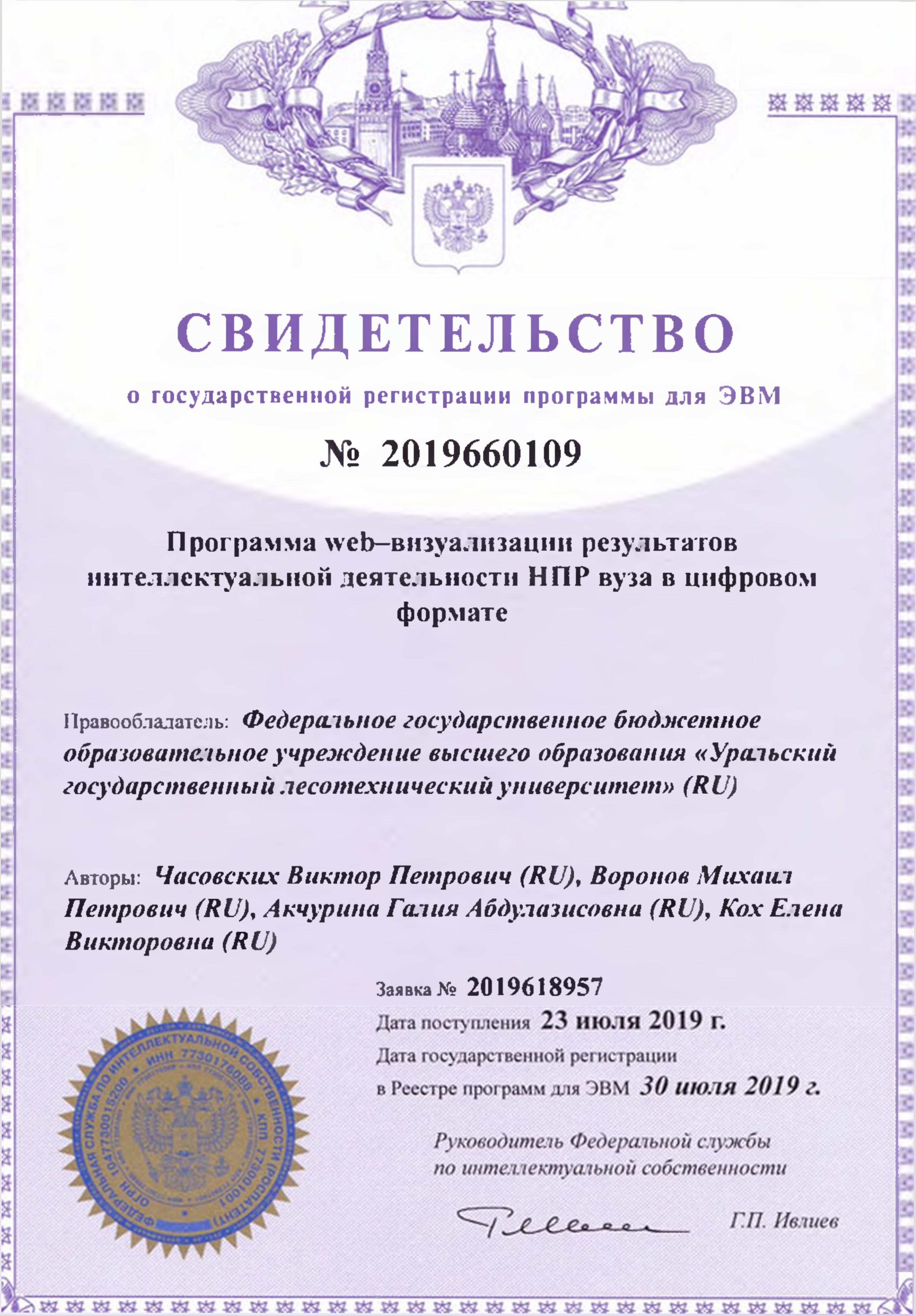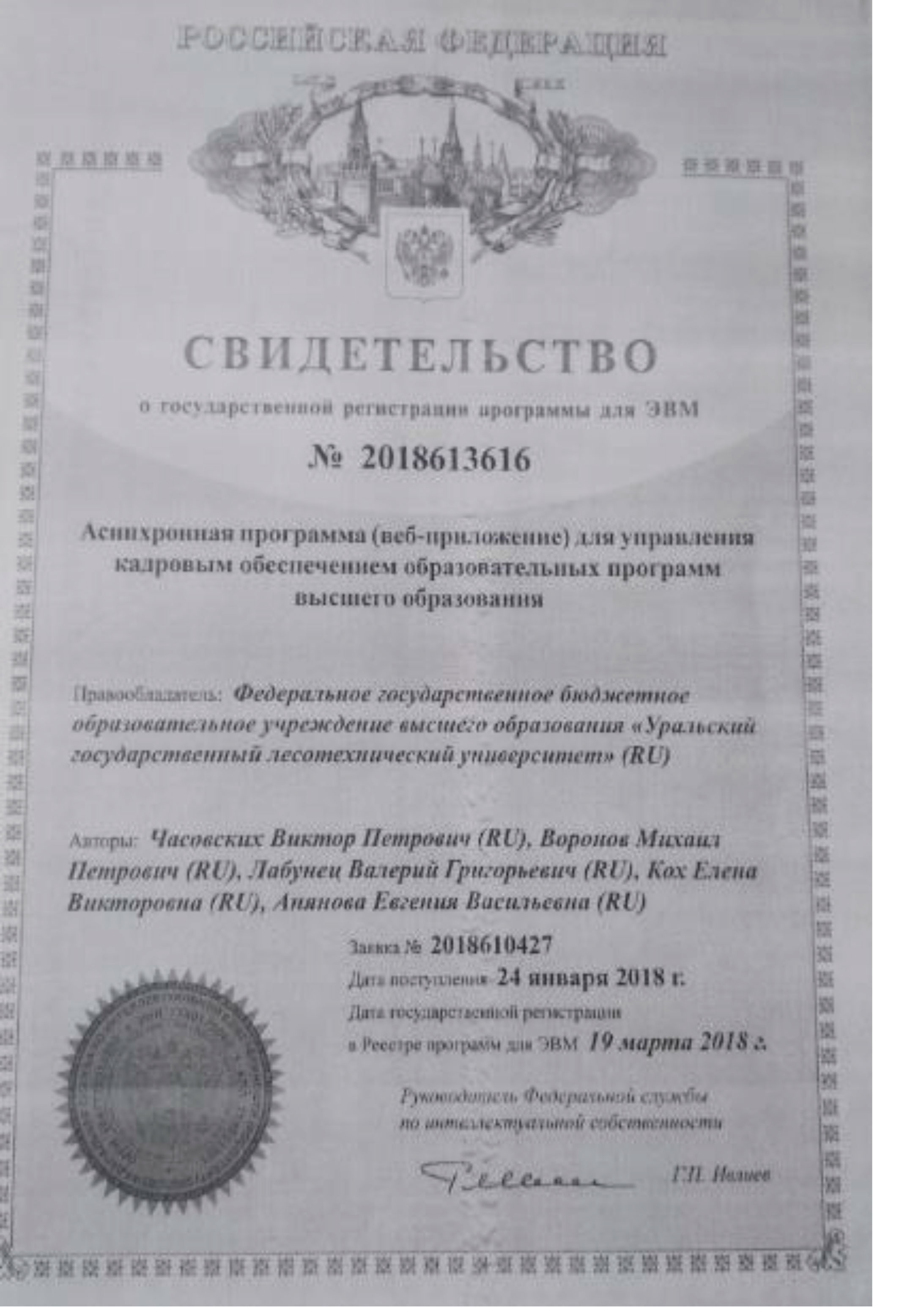 Результаты интеллектуальной деятельности кафедры ПИ УГЛТУ