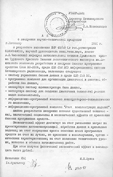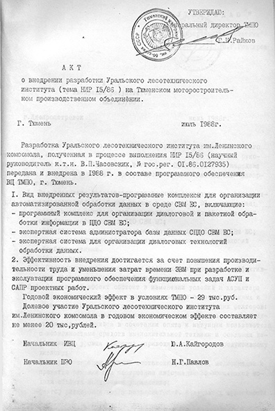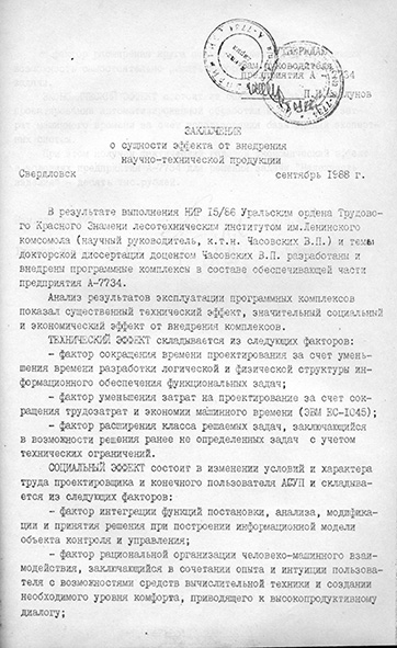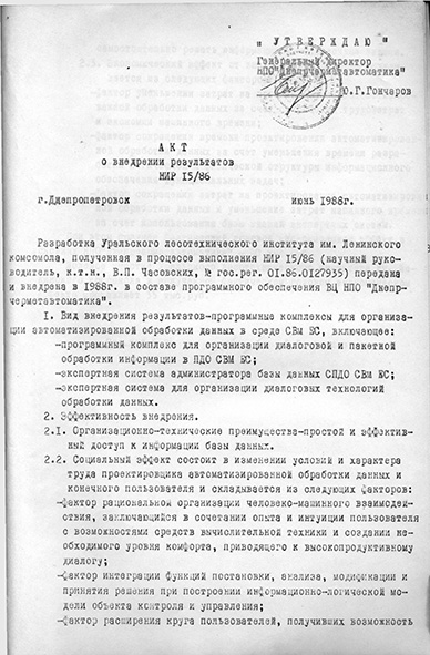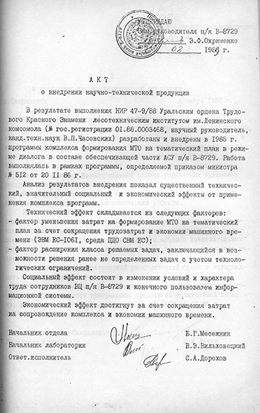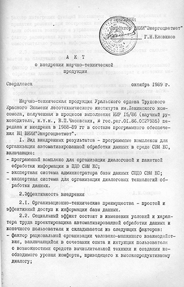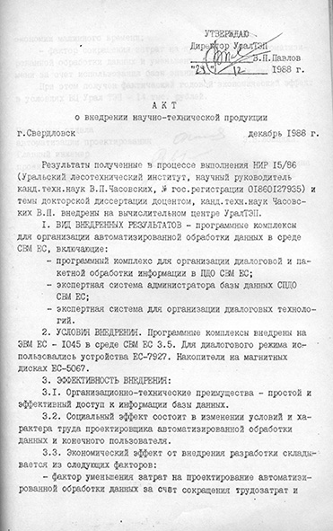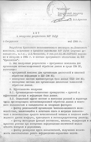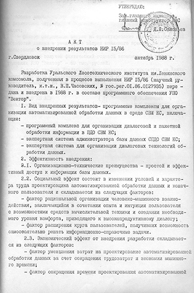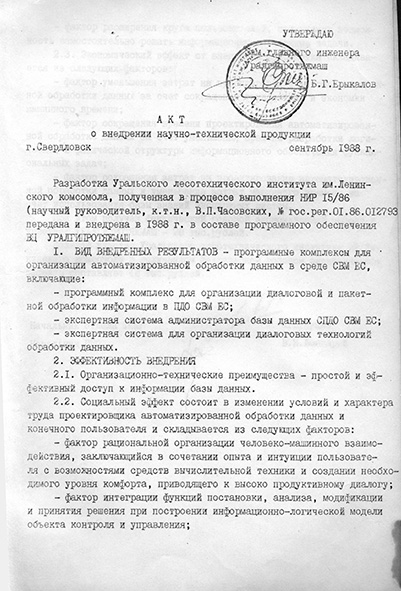 Первым заместителем Министра 20. 08. 86 г., (были переданы УГЛТУ 2 ЭВМ типа ЕС-1035),