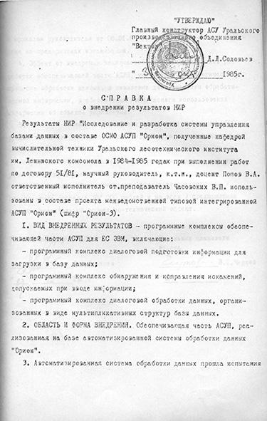систем управления предприятиями радиопромышленности, в частности исследоваие и разработка СУБД «ОРИОН».