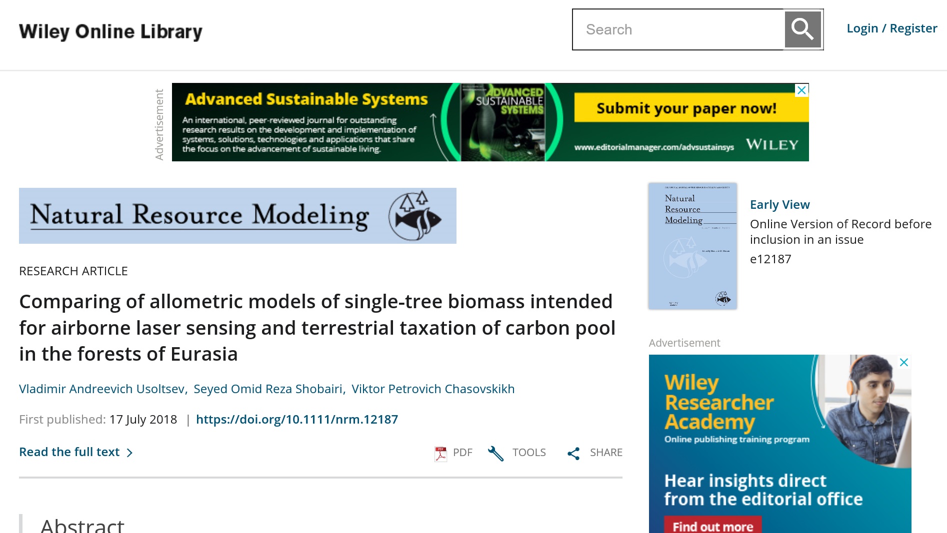 Статья в журнале РИНЦ | Comparing of allometric models of single-tree biomass intended for airborne laser sensing and terrestrial taxation of carbon pool in the forests of Eurasia | Usoltsev, V.A., Shobairi, S.O.R., Chasovskikh, V.P. | 2019 Natural Resource Modeling | ISSN 0890-8575 | Контракт | DOI: 10. 1111/nrm. 12187 | 2019 | Посмотреть |