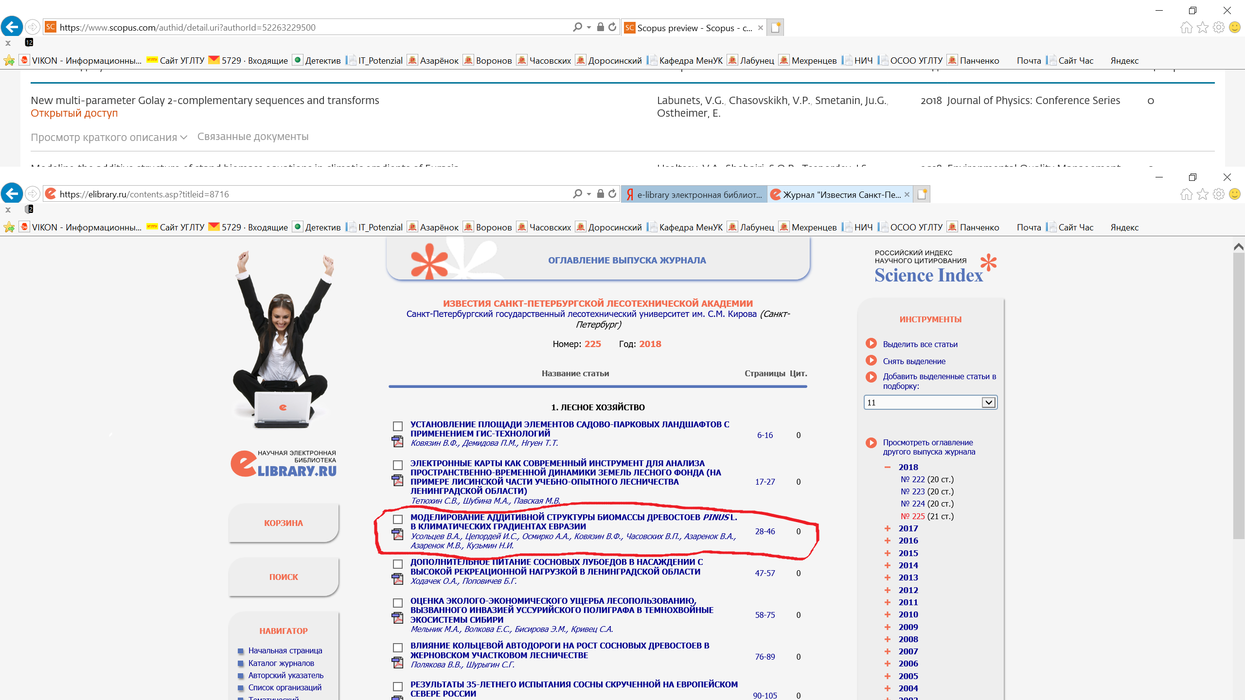 Статья в журнале РИНЦ | ФИТОМАССА ДРЕВОСТОЕВ ДВУХВОЙНЫХ СОСЕН ЕВРАЗИИ: | В.А. Усольцев, И.С. Цепордей, А.А. Осмирко, В.П. Часовских | ФГБОУ ВО «Уральский государственный лесотехнический университет», «ЭКО-ПОТЕНЦИАЛ» (ÈKO-POTENCIAL) Ежеквартальный научный журнал (0+) № 3 (23), 2018 | ISSN 2310-2886 | Контракт | 2018 | Посмотреть | |