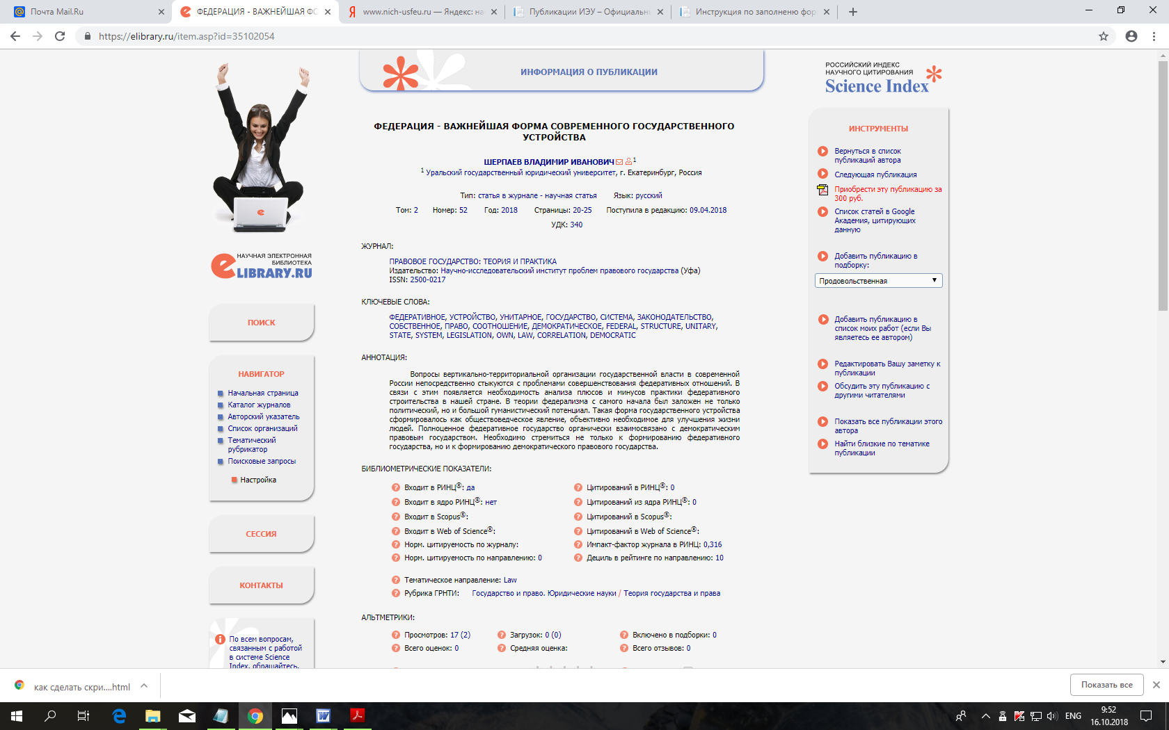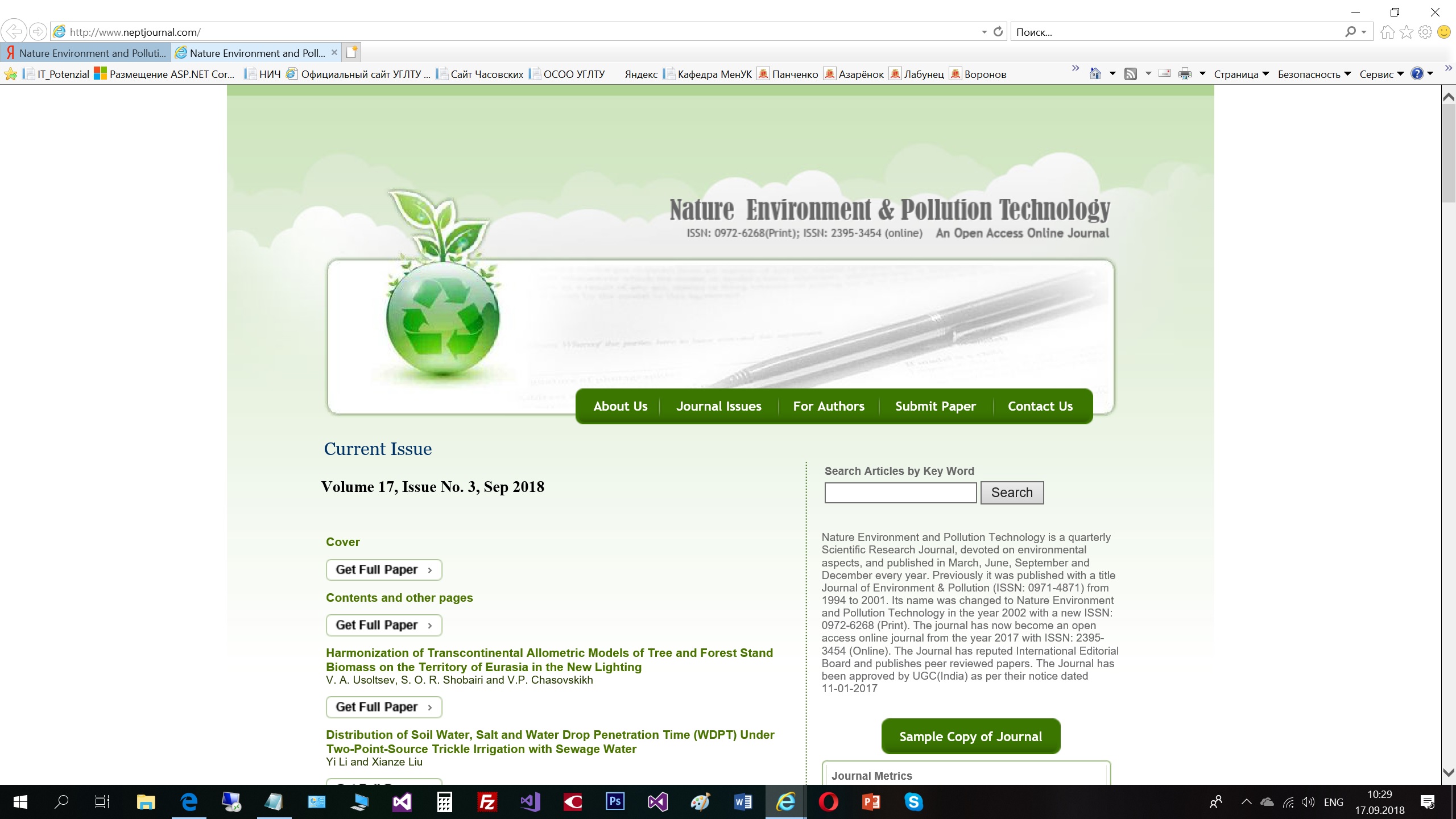 Статья в журнале РИНЦ | Методы эколого-правового воспитания студентов | Щепеткина И.В. | Издательство УМЦ УПИ | ISSN 2310-2888 | Контракт | 2018 | Посмотреть | |