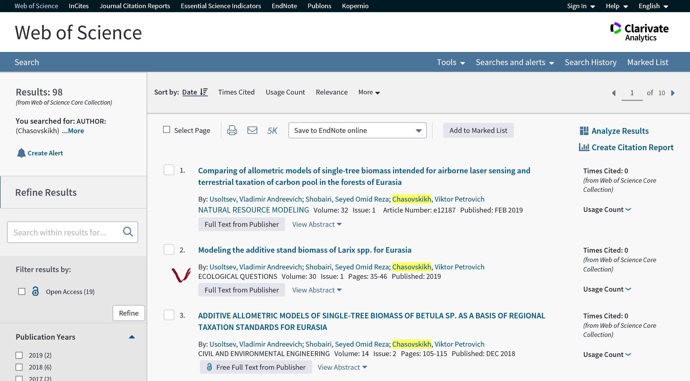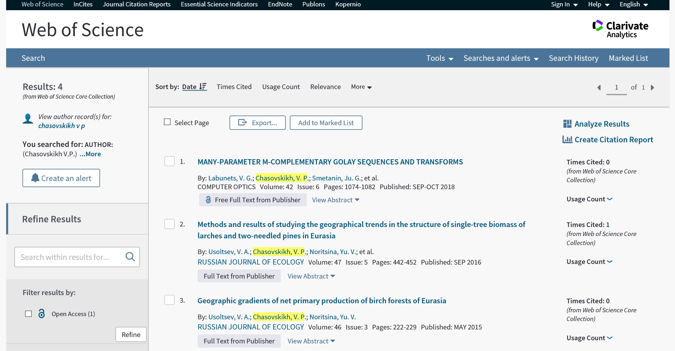 Статья в журнале РИНЦ | Additive model of Larix sp. forest stand biomass sensitive to temperature and precipitation variables in Eurasia | Usoltsev V., Kovyazin, V., Osmirko, A., Tsepordey, I., Chasovskikh V. | 2019 IOP Conference Series: Earth and Environmental Science | ISSN 1742-6588 | Контракт | 2020 | Посмотреть | |