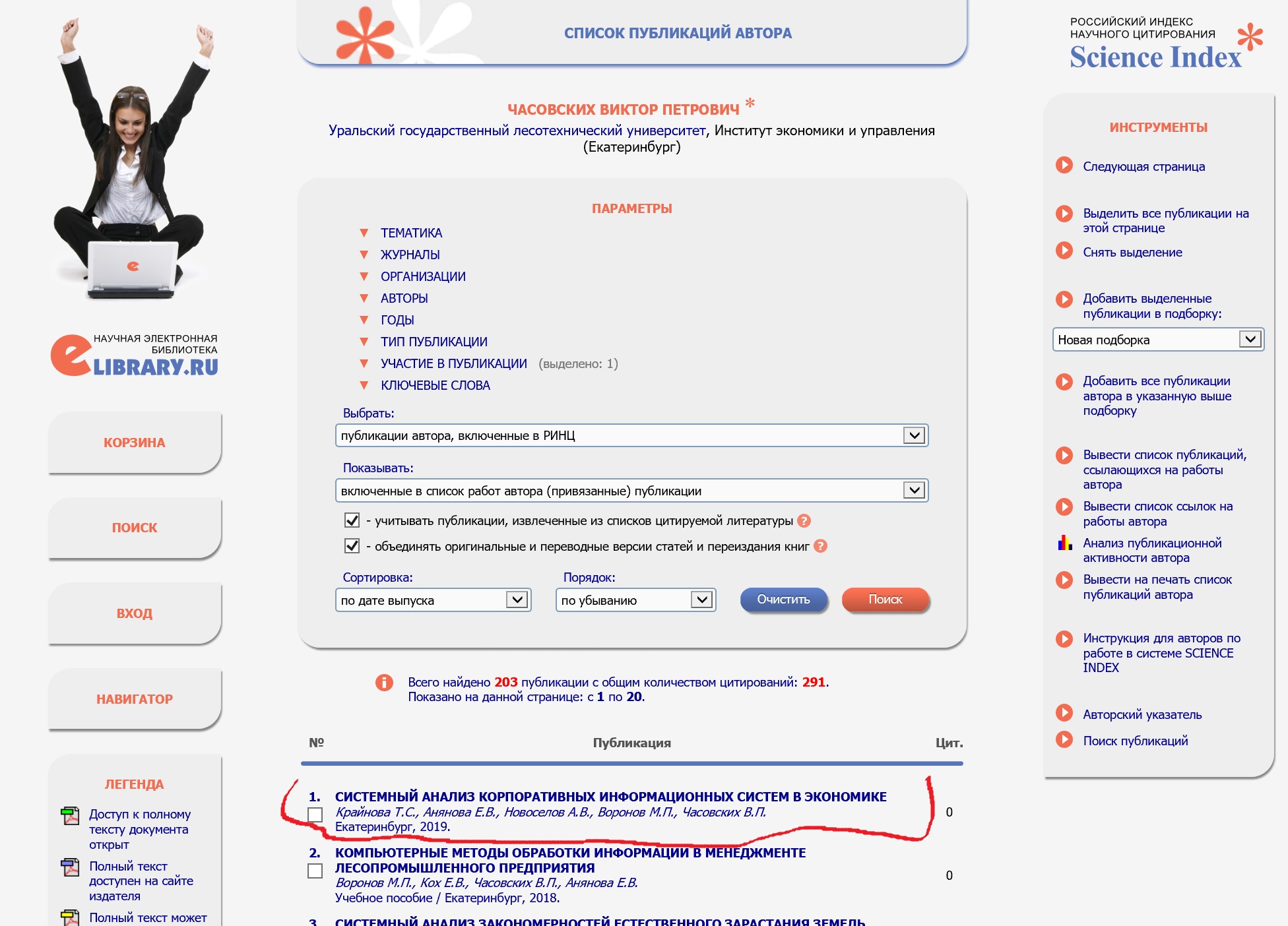 Статья в журнале РИНЦ | Информационные средства и методы автоматизации управленческой деятельности | Часовских В.П., Воронов М.П., Акчурина Г.А., Кох Е.В. | Учебное пособие. – Екатеринбург: Уральский государственный лесотехнический университет, 2018. 119 с. | ISBN 978-5-6041352-7-3 | Контракт | 2018 | Посмотреть |