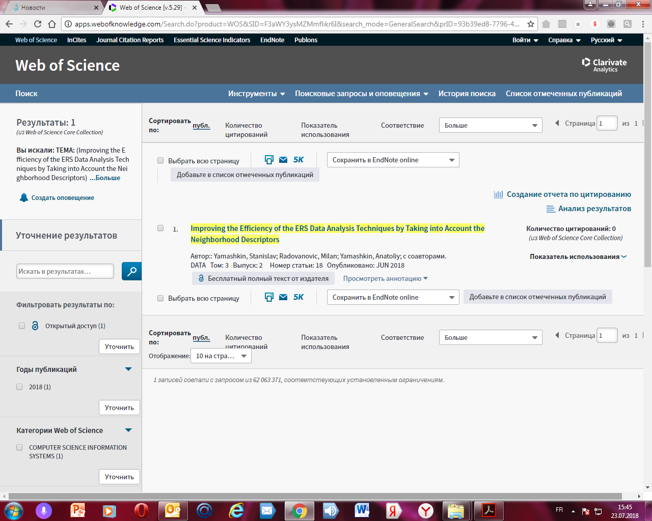 Статья в журнале РИНЦ | Proceedings of the annual international scientific conference on computer systems, applications and software engineering (CSASE) | Kalganova, T., Labunets, V., Radovanović, M.M., Fedoreev, S.A. | CEUR Workshop Proceedings, United States, 2018 | ISSN 1613-0073 | Контракт | 2019 | Посмотреть | |